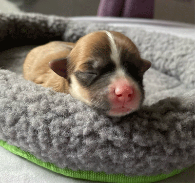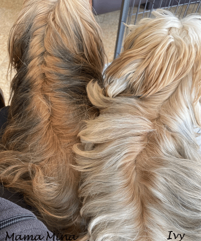 Rücken an Rücken mit Mama Mina. Beide wechseln mit den Farben. Hätte Mama kein Foto gemacht, wäre die Pfütze nicht in die Windel gegangen. Sie ist drei Monate alt. Hier ein Schnappschuss im Alter von 6 Wochen. Im Alter von 3 Wochen sind die Äuglein auf. Ivy ist einen Tag alt.